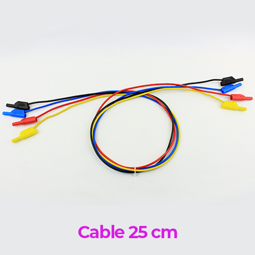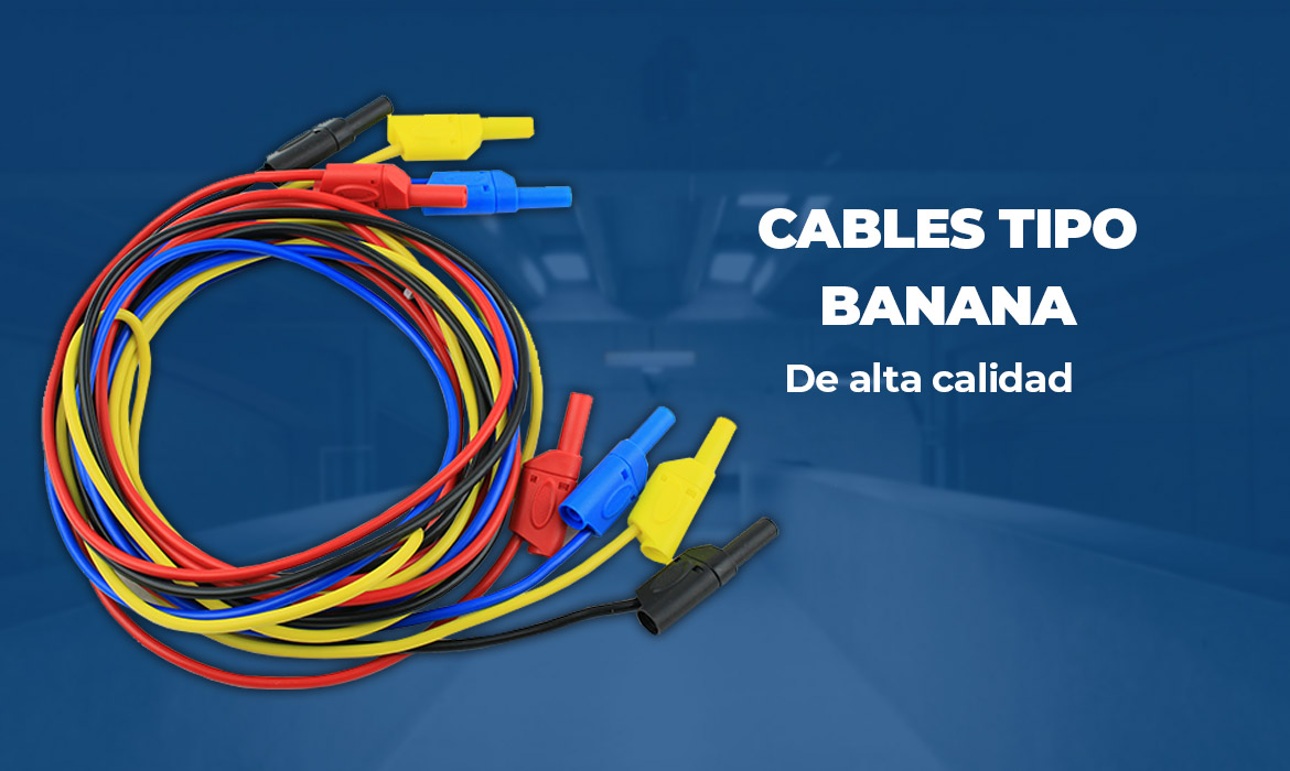 Los cables tipo banana son conductores eléctricos flexibles terminados con conectores en forma de pin cilíndrico llamado «banana» debido a su diseño curvo y expansión elástica. Este diseño permite una conexión segura y firme en tomas hembra estándar.